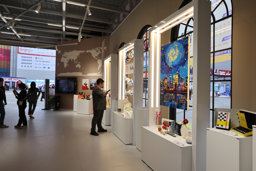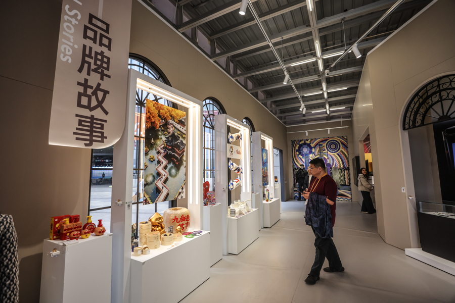 “品牌故事”展区呈现了上海品牌的多元面貌,既有老字号焕发新生,也有新品牌创新成长。老凤祥携曾在米兰时装周亮相的“繁花秘境”花冠首饰参展;上汽智己带来三款新能源汽车模型及品牌出海视频,展现“新三样”的国际化步伐。
