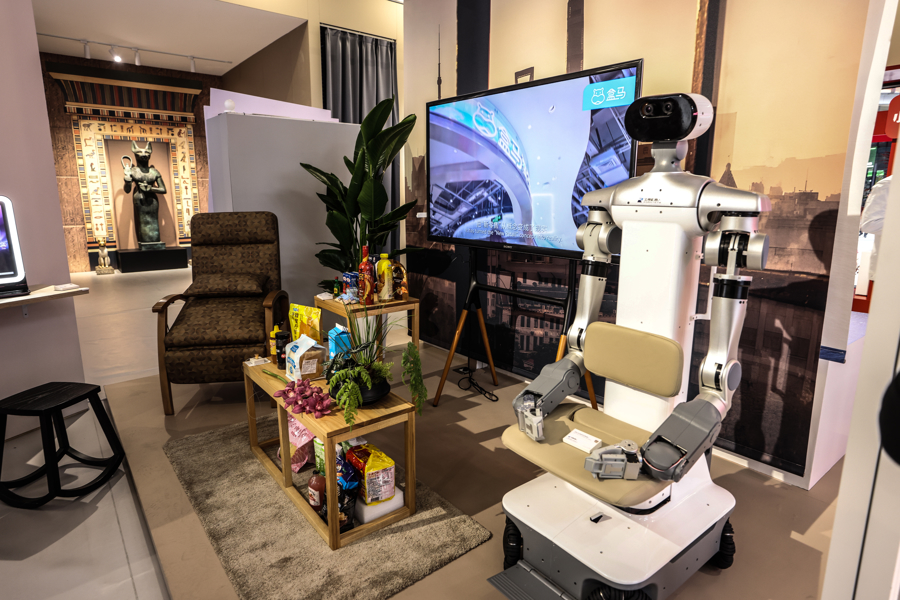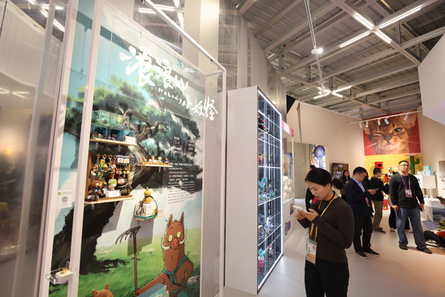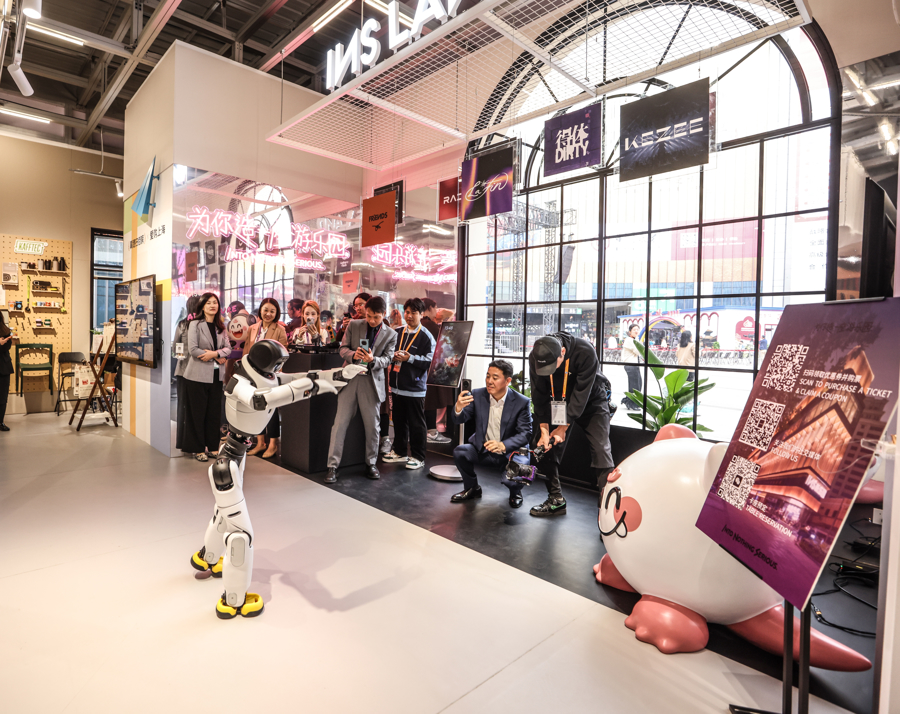 “消费创新”展区聚焦银发、少儿、青春、宠物四类主题经济,通过“AI+消费”呈现服务消费与数字消费的新活力。未卡品牌带来巨型猫咪海报和创意猫爬架;少儿区域展示多款AI陪伴玩具;青春经济区汇聚B站、阅文、上美影等IP内容企业;银发经济区则强调温暖陪伴,而不只是产品功能。